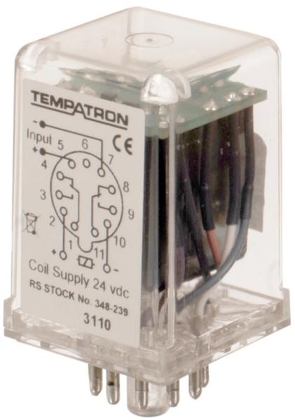 The Tempatron high sensitivity CMOS relays operate from a wide ranging 3.5Vdc to 50Vdc input and have 2 pole isolated changeover output relay contacts, making them ideal for use with CMOS devices. A Darlington pair in the input circuitry gives these relays very sensitive input switching, together with a wide ranging input voltage and very low current requirements. These relays are available in 12Vdc and 24Vdc versions and are housed in a compact 36mm x 36mm square enclosure for surface/DIN rail mounting to a socket.